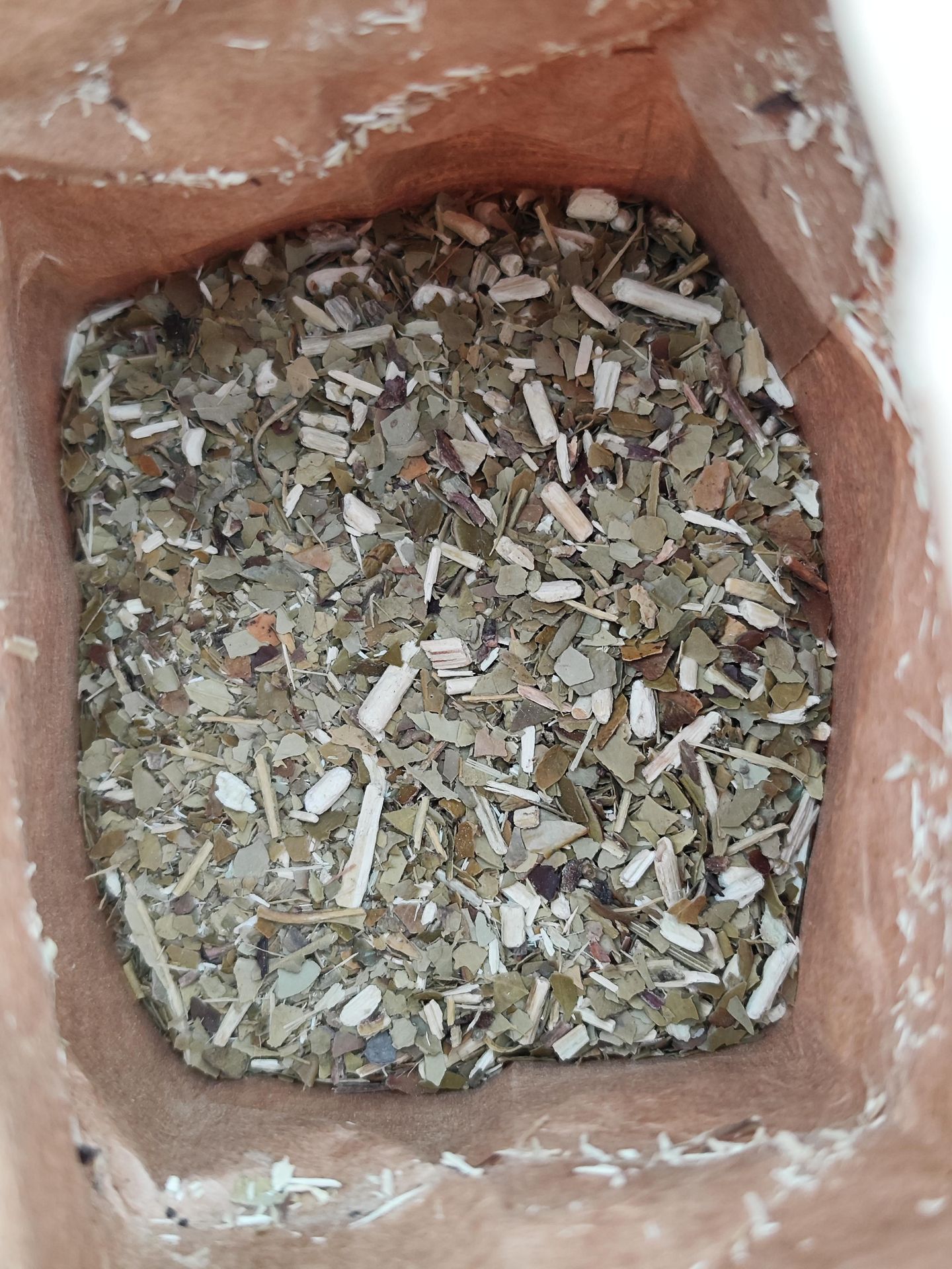 Упаковка из плотного картона, выполненный в сдержанной цветовой гамме, отражает экологичную философию бренда. Минималистичный дизайн дополнен стилизованной гравюрой с изображением аргентинских пейзажей — дань аграрным традициям. У бумажной упаковки хорошая герметичность: швы проклеены безупречно, исключая малейшую просыпь йербы. Для вскрытия потребуются ножницы, так как чтобы открыть упаковку руками надо изрядно постараться. В углу на лицевой стороне скромно размещён сертификат органического происхождения, а на левом торце — таблица с подробным составом на настой 50г. пролитый 200 мл. воды 70°C. Интересный нюанс: содержание кофеина согласно таблице всего 112 мг. — ниже, чем у многих аналогов йерба мате, что оценят поклонники мягкого тонизирующего эффекта.