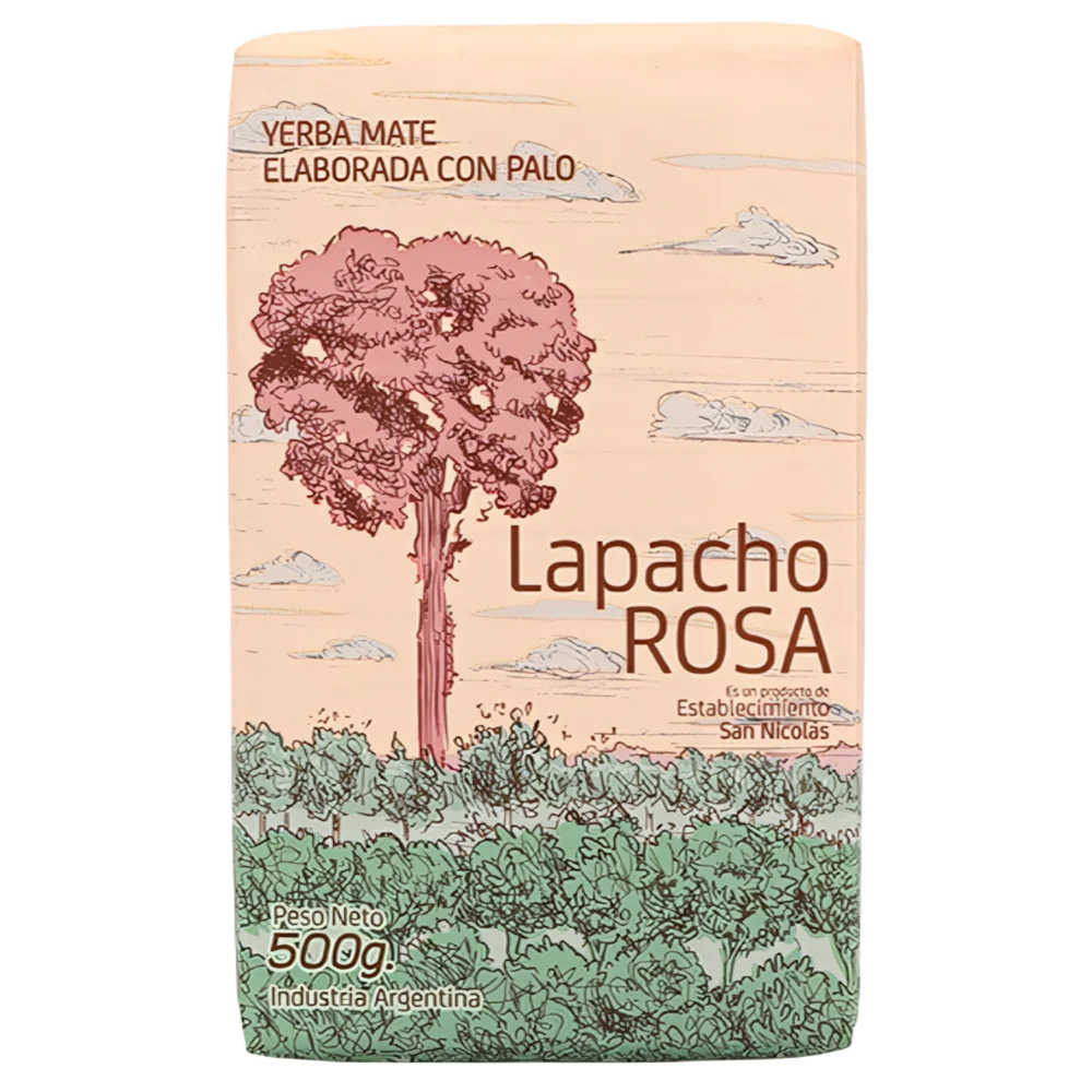 Lapacho Rosa — классическая аргентинская йерба из провинции Мисьонес, но с легким парагвайским оттенком. Его производят на небольшой плантации (Establecimiento San Nicolas), где используется традиционный метод сушки с розжигом эвкалиптовой древесины, после чего йерба выдерживается в течение 24 месяцев. Весь производственный процесс тщательно контролируется, чтобы обеспечить максимально возможное качество. Интересно, что название йербы и рисунок на этикетке связаны с историей дерева Лапачо, которое растет среди деревьев йербы на плантации и раскрашивает пейзаж своими розовыми красками.