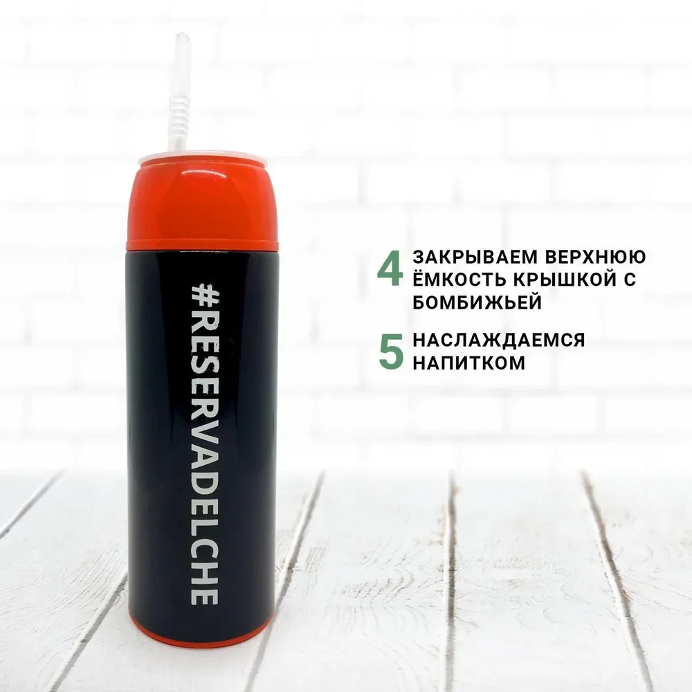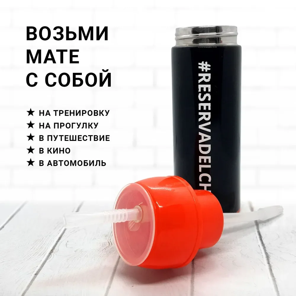 Металлический Матермос от бренда Reserva Del Che в изящном чёрно-красном исполнении.