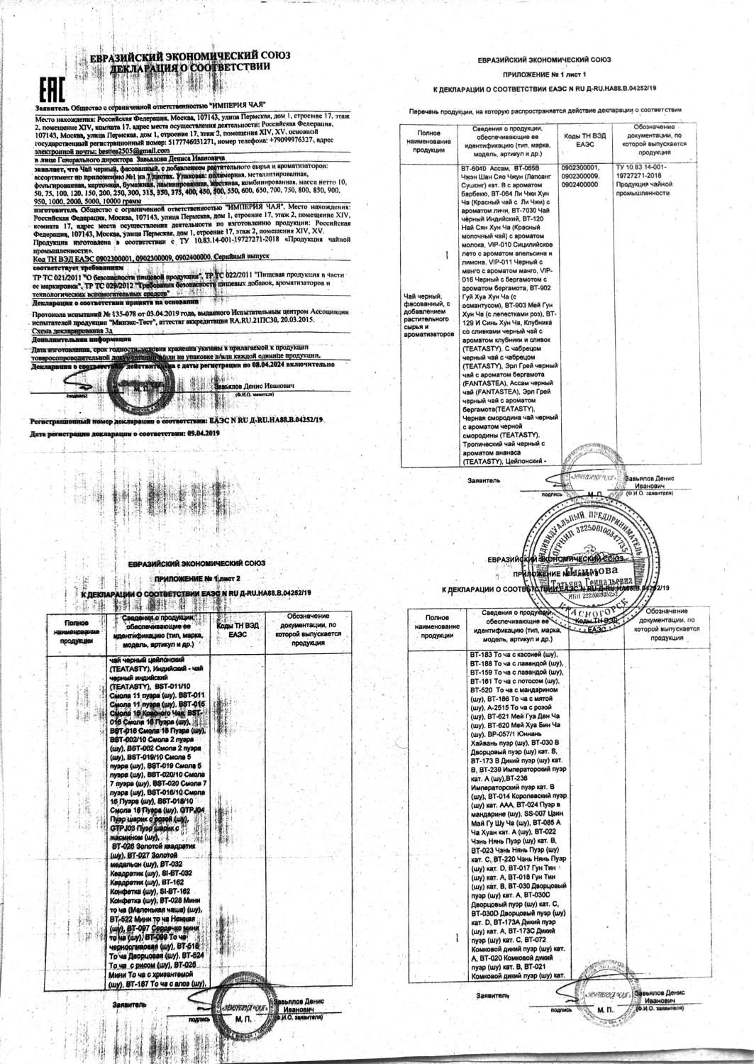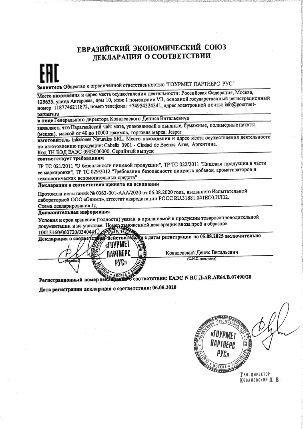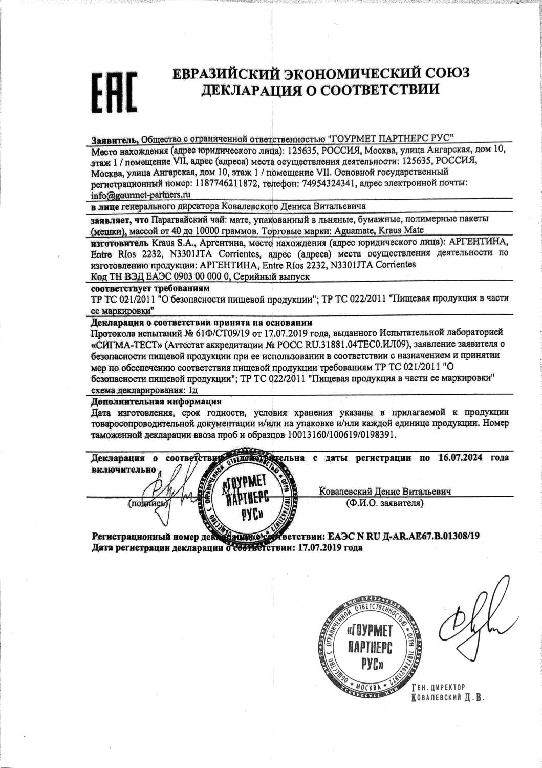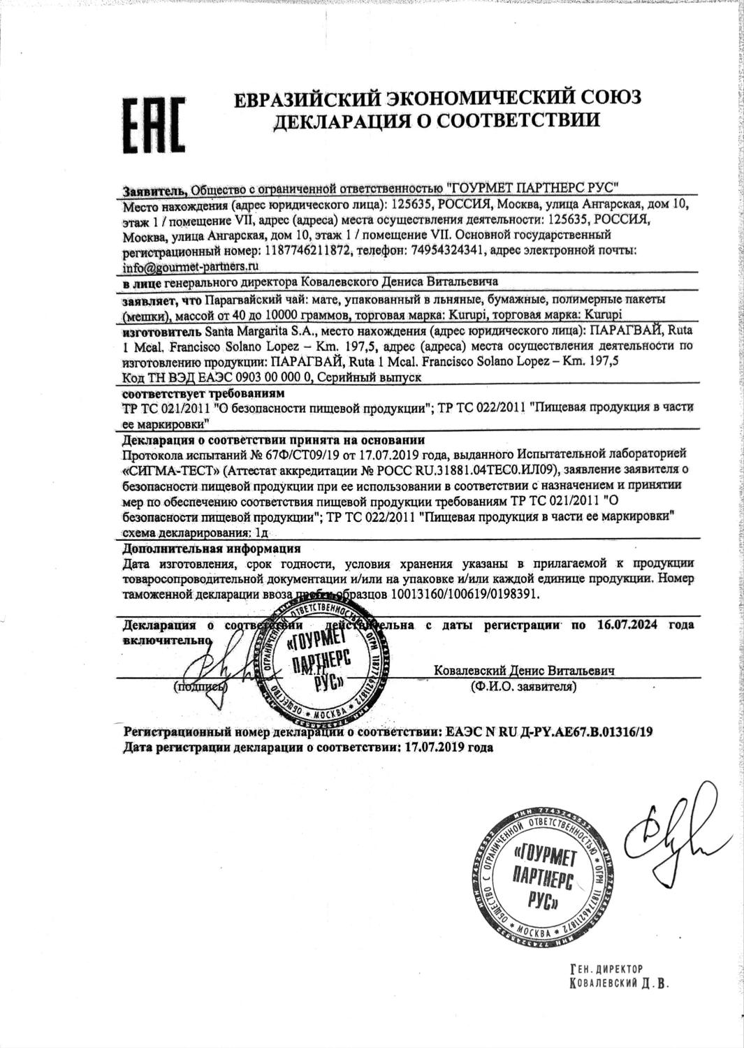 Декларация соответствия (Taragui, Union, La Merced)