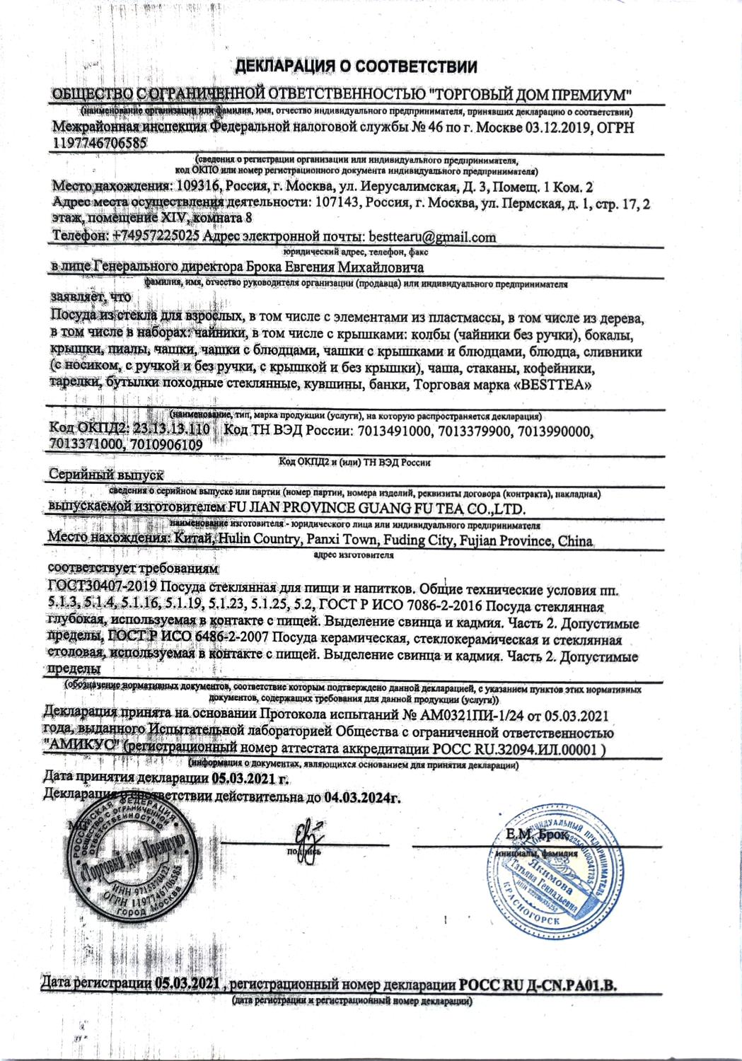 Декларация соответствия (Amanda)
